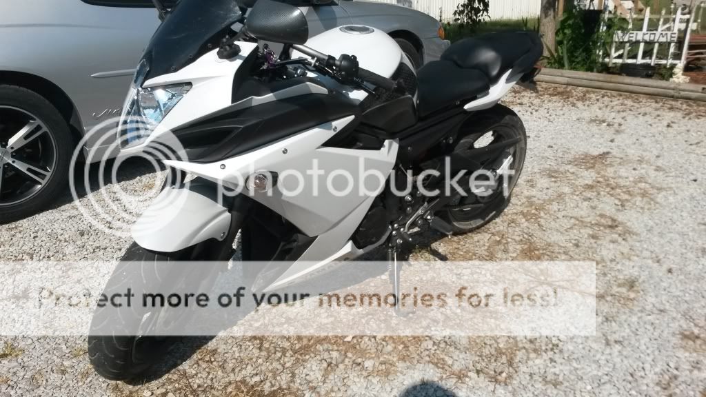 Cut down and blacked out windscreen, carbon fiber ZX6R mirrors, black shorty adjustable levers, Spider Peak grips, FZ1 handlebars, carbon fiber universal flush mount turn signals, Race Tech fork springs & 15W oil, K&N Air Filter, Slip on 6R shorty muffler, Dyno Jet Power Commander 5 with 2 position map switch and speed wire hooked up and calibrated, Roaring Toyz Lowering link & forks lowered, rear fender eliminator with factory turn signals, Continental Conti-Motion tires. Stomp Gripz tank grip, PSR air injection block off plates