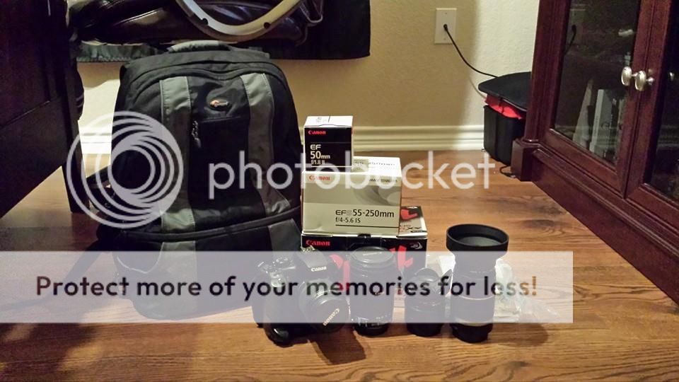 Hey guys, im putting up for sale my Canon Rebel XS Camera. Comes with everything you could ever need. Includes: Canon Rebel XS, 18-55mm Lens, 18-135mm Lens, 55-250mm Lens, 50mm Prime Lens, Battery grip, 2 Batteries, Charger, Lowepro Compuday Pack, and all factory boxes, manuals and stuff included when purchased, aside from the 18-135mm lens(missing factory box only). Asking $700 as this is a complete kit, and retails today for over $1300 dollars. Feel free to message me or text me at 2five4-679-1156