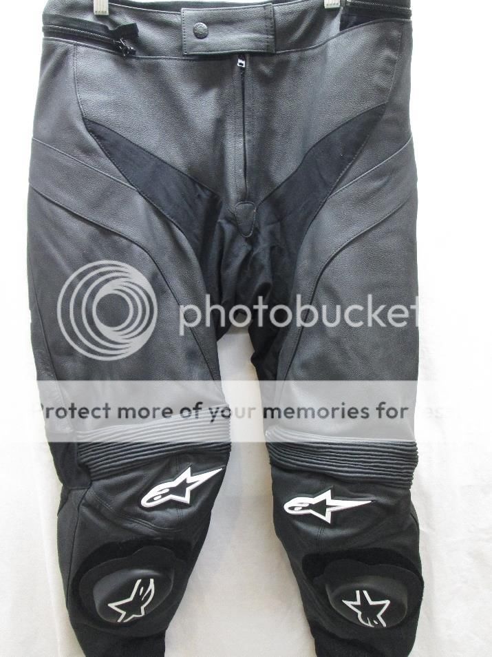 Standard all black Alpinestars GP Plus leather pants. Retail for just under $500. They are brand new other than being tried on and hanging in my closet for the summer. Maybe a bit dusty but never worn outside.