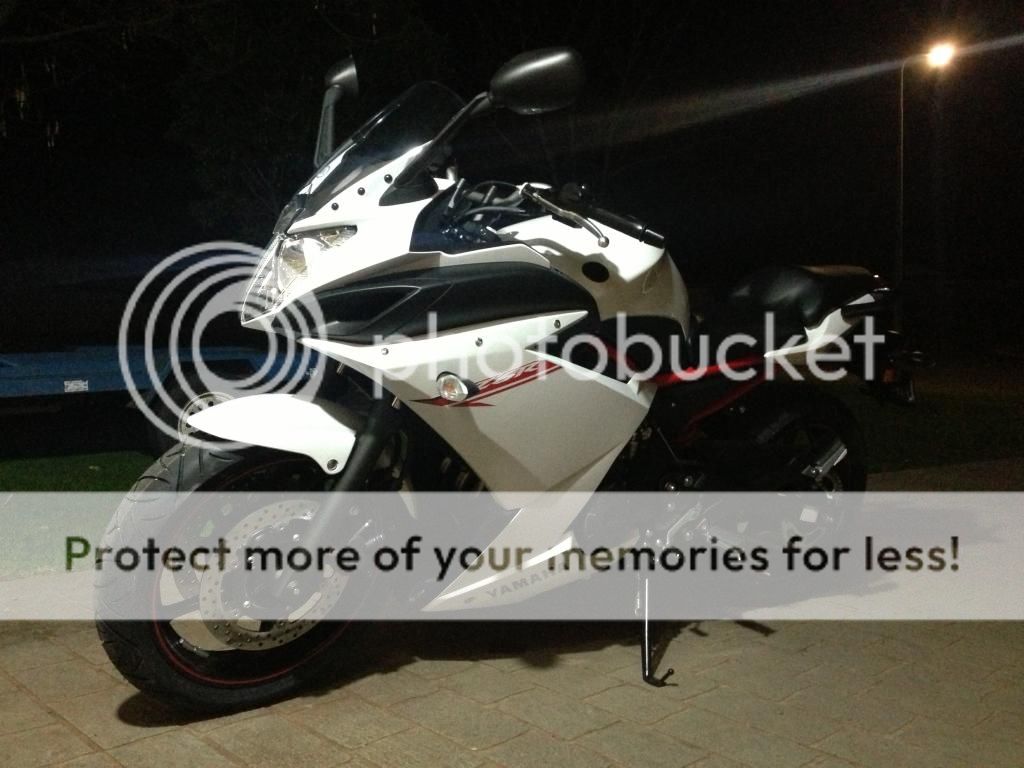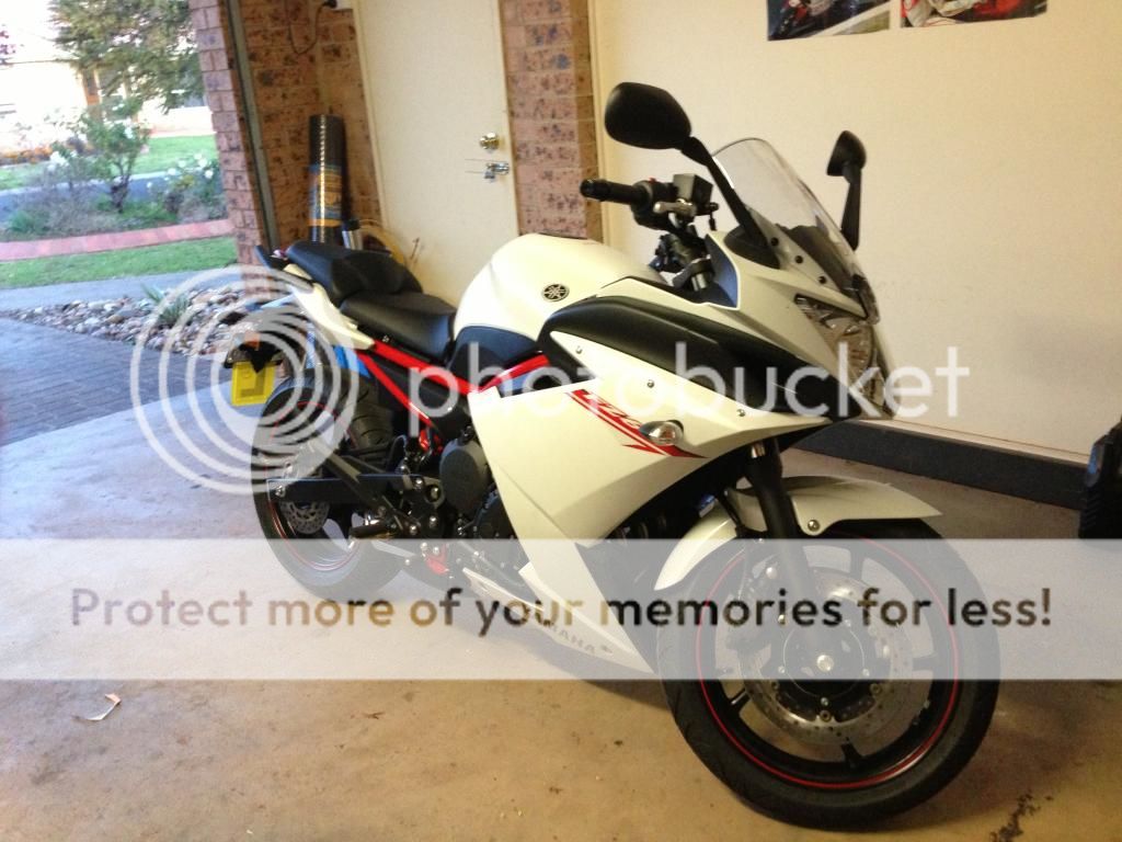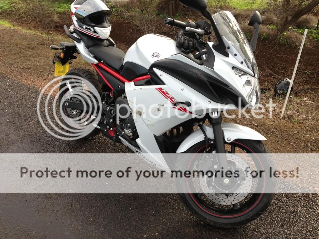Now, as I mentioned earlier, I'm a big Duke fan, loved the 848 in pearl white when it was first released, so when I spotted the FZ6R in pearl white with a red frame we had a winner! Quick trip to Sydney on Thursday and I am now the proud owner of 1 yummo (IMHO) FZ6R dressed in white.